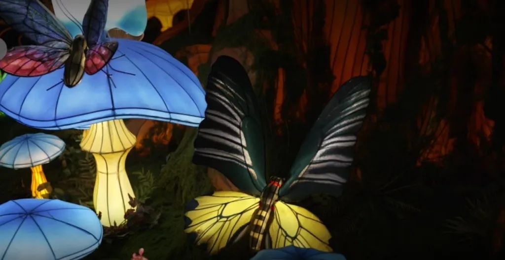 今年,豫园灯会携手宁波周尧昆虫博物馆,从视觉及听觉上联合共创。在灯会期间,黄金广场的生命之树上点缀着来自宁波周尧昆虫博物馆的昆虫元素,如金裳凤蝶、帝王突蜣螂、长戟大兜虫等,它们与山海神兽共同栖息于树上,明亮闪烁,仿佛进入真正的丛林深处。此外,本届灯会还通过声音设计,让观众在走近生命之树时能听到自然虫鸣和昆虫振翅的声音,从视觉和听觉上多维度感受生机与活力。